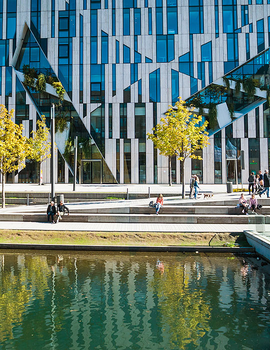 zwischen Natur und Urbanität. Zugleich bildet der Bau den architektonischen Abschluss der Königsallee.